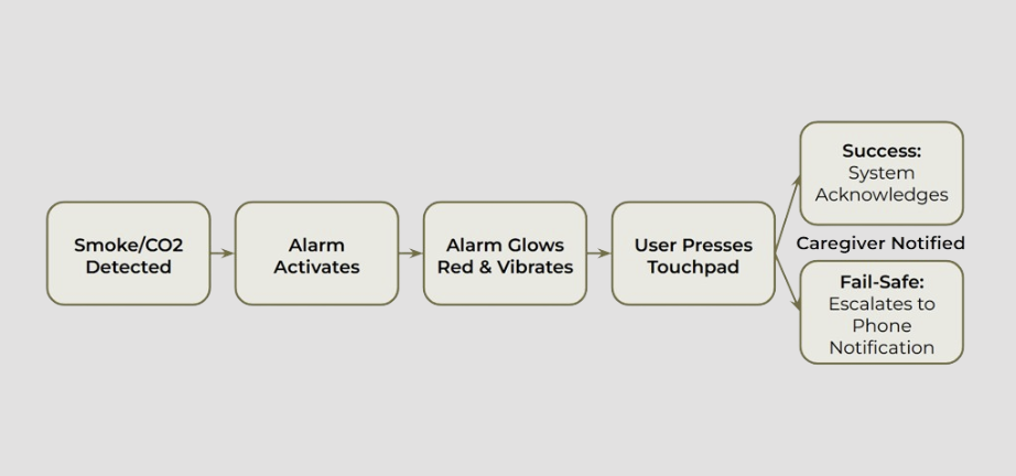 Current alarms rely heavily on high-frequency sounds and small visual cues, which don’t address age-related hearing loss or low-vision conditions.